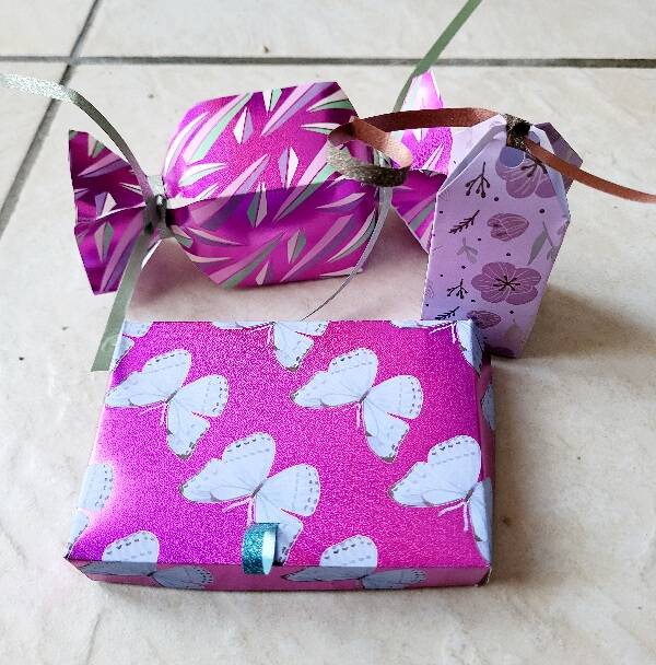 Les bijoux sont présentés dans des emballages cadeaux, tous réalisés à la main.